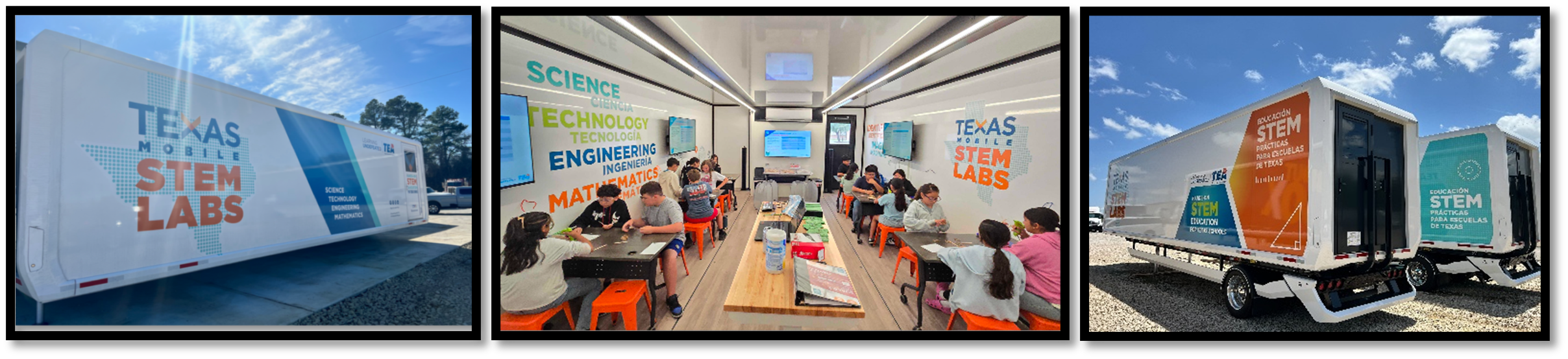 The Texas Education Agency and Learning Undefeated are excited to announce the Texas Mobile STEM Laboratory schedule for the 2025–2026 school year. We had 1,024 individuals apply for a visit during the application window, representing all 20 educational regions. All campuses that submitted applications have been informed of their status. The applicant, principal, and superintendent from each of the selected campuses received email notifications confirming their selection. Click here to view the 2025–2026 schedule.